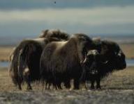 on hooves, their long hair In the summer the musk ox herd has about 10 members. They will use the almost constant daylight to stuff themselves on plants. They need to put on enough fat to get them through the long winter. In winter the herd can have about 15 to 20 members. They will head out to higher ground where the fierce Arctic winds blow the snow off the ground. Here they will feed on crowberry, bearberry, and willow. The herd only travels about 50 miles between its summer and winter feeding areas. Breeding season starts in July and goes on until the end of August. Each herd has a dominant male, or bull, who will try to keep other bulls from mating with the females. The female will give birth to one calf the following April through June. The calf can graze in about a week but keeps suckling for another year. The lifespan of a musk ox is about 24 years. Muskoxen coexisted with the mastodons and mammoths and have survived early hunters and climate changes that caused the extinction of other species. The musk ox doesn't have many predators. Polar bears can sometimes kill weak or injured oxen. The Arctic wolf is the only serious predator. Musk ox form a defensive formation when threatened. They will first run to a higher location, then turn and stand shoulder-to-shoulder in a circle. With their heads lowered, they form an impenetrable wall. The young are protected in the center of the circle. Musk oxen stampede easily and sometimes young calves become separated from the herd and are lost. The musk ox's defense is useless against bullets, and they became easy targets for humans. They were almost hunted to extinction for their fur and their meat. By the early 20th century the population had become depleted. In 1917 the Canadian government gave them protection and now there are about 90,000 musk ox in that country. More ominous as far as the decline of the musk ox is concerned are the effects global warming has had on their breeding. In the past few years, as a result of warmer climates, the coastal plains used as calving grounds have had more snow, and as a result, a later thaw. Musk oxen have moved to the foothills to find forage and often give birth there, making them and their calves more vulnerable to grizzly bears. The Inpiaq speaking Eskimos of the Northern Slope of Alaska call the musk ox "Oomingmak", which means "animal with skin like a beard". 2000