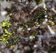 destroy germs, and emetics Well, I have told you of the way that the leaves of the Creosote Bush can be used, but I have not told you about how the bush looks. The Creosote Bush is unique. The bush is a robust shrub that grows very abundantly. The bush is basically a group of 4 to 12 plants that shoot up from one plant in all directions. Some bushes are thought to be thousands of years old. The Creosote Bush has small (1-2 inch) pointy green leaves that are covered with a varnish. These leaves grow directly from the branches of the bush. The Creosote Bush has flowers that also grow along the stems. These flowers are yellow and about the same size of the leaves. The fruit is small and round with gray or white hairy tufts growing from them. This bush is very useful to us in our everyday lives just as it was to the Native Americans of the desert. It is, like many other plants, a contributor to the world in a small, but important way. Simone Mc. 2000. More imanges of the creosote bush.